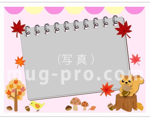 ブラウンをメインカラーとした秋らしいフレームです。どんぐりと木の葉が紅葉しているものもあって実りの秋のイメージが浮かびますね。写真が入る場所がモクモクとした雲のような形なので可愛い感じに仕上がります。